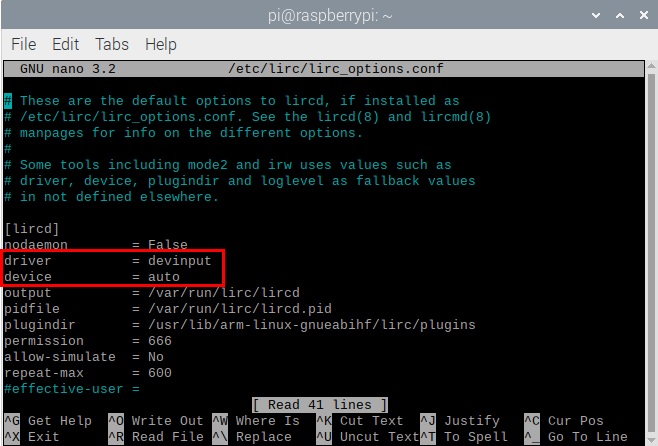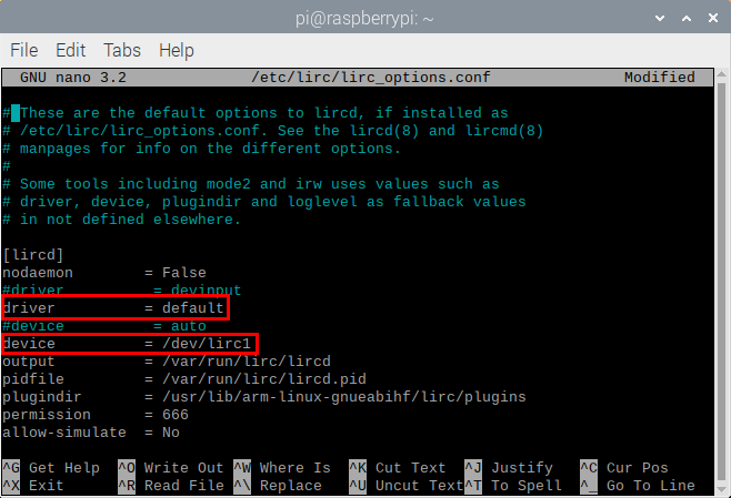 sudo nano /etc/lirc/lirc_options.conf